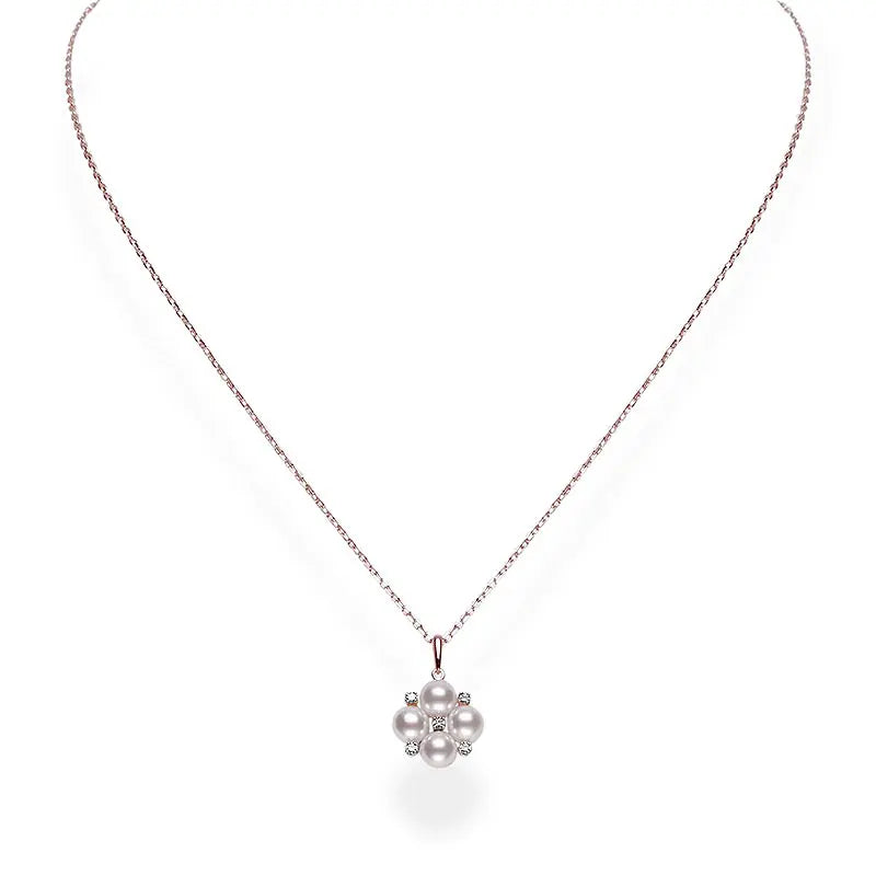 Mikimoto Rose Gold White 5mm Akoya A+ Cluster Pearl & Diamond Pendant